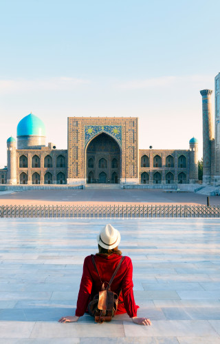 Erkunden Sie im Westen Usbekistans die Freilichtmuseums-Stadt Chiwa, die im südlichen Delta des Flusses Amu Darya liegt. Einst für den Sklavenhandel berüchtigt, verzaubert das heutige Chiwa durch seine beeindruckende Architektur, sein lebendiges Kunsthandwerk, die lokale Musik und unverwechselbare Speisen. Das geschäftige historische Zentrum und die verschlungenen Gassen sind mit ockerfarbenen Mauern gesäumt, von denen viele mit kunstvollen Fliesen in verschiedenen Blautönen geschmückt sind. Das Zentrum Itschan-Kala beherbergt unzählige Museen, Moscheen, Mausoleen und Minarette. Die Dshuma-Moschee mit 218 Säulen bietet eine angenehme Ruhepause von der lebendigen Umgebung, und das hoch aufragende Islam-Hodsha Minarett besticht mit einem Panoramablick über Chiwa. Besuchen Sie auch den Tasch-Hauli-Palast mit Elementen weltlicher Khorezm-Architektur und das Mausoleum Pachlavan-Machmud, das Chiwas Schutzpatron und seine Familie ehrt.