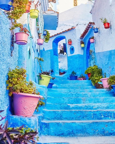 A medieval pilgrimage center with numerous mosques and religious sanctuaries overlooked by Morocco’s Rif mountains, Chefchaouen is a paradise for travelers of all shades. Traditional Moroccan and Andalusian flavors rise from the kitchens of this pretty highland village with dreamy turquoise walls and red-tiled roofs. Think shady alleyways, blue-washed rough-hewn stone walls hung with potted plants, and wrought iron windows that offer a peek into steep hilly lanes – Chefchaouen is all this and more. Walk in its beautiful medina and bustling bazaars selling traditional textures and colors, visit the Bab el-Ansar, or take a stroll by the Ras el-Maa. A medieval fortress and ethnographic museum are also tucked by the kasbah. The Seat of Sebbanin and the 15th-century mosque with its soaring minarets are worth a visit too.