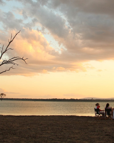 Lake Manze Camp is an authentic tented safari camp that rests under a beautiful shady canopy of Doum Palms and Terminalia trees, on the shores of Lake Manze.