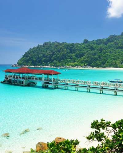 Rest and relax in the stunning Perhentian Islands located in the South China Sea, just off the northeastern coast of peninsular Malaysia. Spread across two islands – Perhentian Besar (big) and Perhentian Kecil (small), part of the Pulau Redang National Marine Park, embrace barefoot living and unwinding at this tropical getaway. Between the crystalline turquoise-blue waters and the network of rocky trails through lush wooded hills, explore a handful of small beaches, secluded coves, and viewpoints. Macaque monkeys and monitor lizards wander about inland, while blacktip reef sharks, turtles, and corals entice snorkelers and divers to Shark Point, Coral Bay, and a sugar hauler shipwreck site! Apart from your hammocks and beach picnics, there are kayaking excursions, seasonal turtle conservation projects, and fishing village interactions to experience, with colorful local water taxis to ferry you around. At the end of each day, spectacular sunsets and bonfires await you at the popular Love Beach and Long Beach.