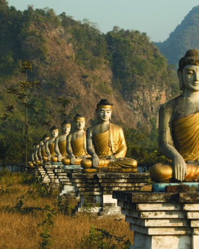 Hpa-An, also known as Pa An, is a charming town and capital of the Kayin state, located north of Mawlamyine and near to the Thai border. Hpan-An is reachable by car from Yangon or Mawlamyine, or by a five to six hour boat ride from Mawlamyine to Hpa-An. Hpa-An is a distinctive rural town, with a dramatic backdrop of limestone mountains. Covered in luscious tropical greenery and offerring picturesque views, the tallest mountain is Mount Zwekabin. The Kayin people are very fond of the color red, which is seen worn by most men women.