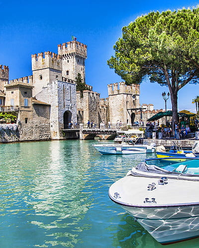 Sirmione is a quaint little settlement on the southern shores of Lake Garda in Lombardy. One of the prettiest historic towns around the lake, Sirmione has much to offer culture buffs as well as outdoorsy vacationers. The Scaligero Castle, the ancient ruins of the Grotte di Catullo, and the thermal baths are the town’s most popular attractions. The well-preserved medieval castle of Scaligero is definitely worth a visit, as is the Roman excavation site by the lakeside with a charming little museum displaying priceless artifacts. When in town, take a good soak at the thermal baths of Terme di Catullo and Terme di Virgilio, and don’t leave without enjoying a sunset boat tour on Lake Garda. Enjoy walking down the winding streets of the old town lined with colorful homesteads, boutiques, cafés and local eateries.