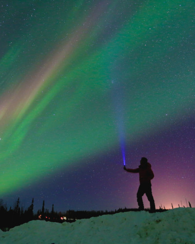 Borealis Basecamp is situated on a quiet ridgeline at a latitude of 65° in Alaska, roughly 25 miles north of Fairbanks. It is surrounded by 100 acres of pristine boreal forest and provides a complete immersion in the Alaskan wilderness. The basecamp’s location is ideal for viewing the Northern Lights (Aurora Borealis) because there is minimal light pollution. It is also a good place from which to explore the surrounding landscape, either on foot, by dog sled, or snow machine.