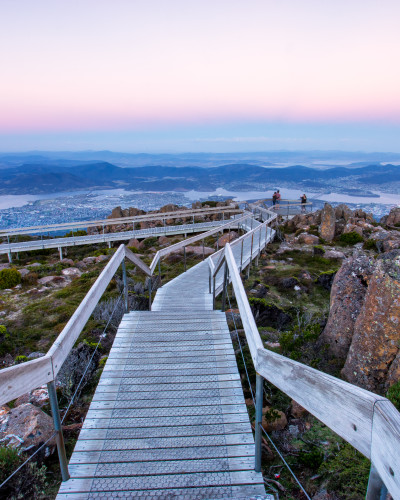 The Islington Hotel is a boutique lodge perched on the residential hills of South Hobart with Regency architecture and manicured botanical gardens featuring an infinity-edge pond.