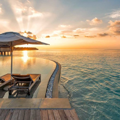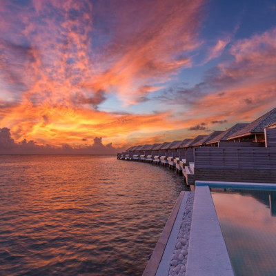 Hurawalhi Island Resort is an adults-only island escape set within the Lhaviyani Atoll, Maldives. This picturesque accommodation offers a relaxing stay amid lush interiors, tropical gardens and pristine palm-fringed beaches. Find airy over-water villas that feature indoor/outdoor living spaces, ocean-themed artwork and sunbeds. Take in fantastic vistas of the Indian Ocean from your private deck. Enjoy unrestricted access to crystal-clear lagoons. Join in for yoga sessions on the beach and rejuvenate with holistic wellness treatments at the spa with a view! After a lively day outdoors, unwind in the infinity pool. Stay active with futsal and tennis, or play arcade games. Witness magical sunsets over champagne and canapés at the pavilion. Socialize at the plush lounge bars, and savor gourmet meals at the stylish dining venues. Treat yourselves to a unique experience at the undersea restaurant!