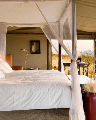 Wolwedans Dunes Camp is a boutique tented retreat in the heart of Namib Rand Reserve, Namibia. Perched atop a high dune, admire the dramatic desert habitat from your vantage point.