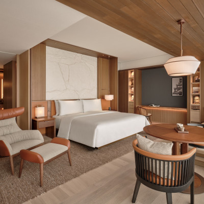 Patina Osaka is located in the heart of the city, close to Osaka Castle and the Naniwa-no-Miya-Ato ruins. At this luxurious property that blends nature and history, stay in a spacious ensuite room with floor-to-ceiling windows. The interiors are tastefully done up in shades of cream and brown and feature contemporary furniture, organic materials, and evocative artwork by local artisans. Some rooms come with Japanese-style seating areas and others have private balconies. Special touches include evening turndown service and complimentary non-alcoholic beverages. At the onsite spa, pamper yourself with soothing massages, hydrotherapy and sauna sessions. There is also an indoor swimming pool on the property. Head to the immersive Listening Room to unwind with a curated selection of vinyl melodies. Dining options here include the signature P72 restaurant offering modern plant-focused cuisine, and Barin, the contemporary Teppanyaki restaurant. Inaki specializes in grill and rotisserie delicacies, while Nijiri serves Japanese tea paired with French pastries. There is also Sonata Lounge & Bar where you can enjoy your favorite drinks and DJ music.