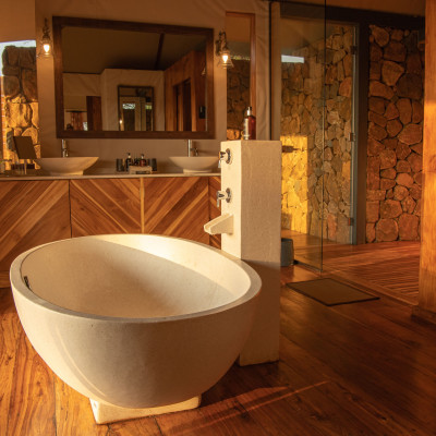 Sayari Camp, located in northern region of Serengeti National Park on the fabulous unspoilt site of Mara River, is a spectacular luxury safari camp. Within this lesser known area, you can enjoy large concentrations of wildlife throughout the year, without the distraction of other vehicles. You can even go off-game driving! Rest your head in one of the 15 luxury en suite tents that are spread across two wings of the camp, each with their own separate mess, ensuring an intimate and personal service. The tents are very spacious and accommodate king size bed and even a bathtub with a view overlooking the savannah! They also have their own private verandah where you can relax. Unwind with a relaxing massage, rest in the comfortable lounge, library and bar area, or go for a dip in the spectacular infinity pool.