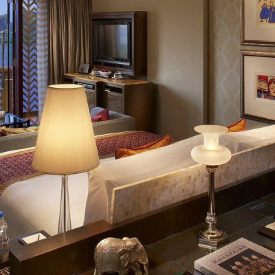 The Leela Palace Udaipur is a decadent international hotel situated on the banks of Lake Pichola and surrounded by the Aravalli Hills. This modern property evokes grandeur of a bygone era. Stay in one of the 80 opulent yet contemporary guest rooms and suites, which feature rich décor and glorious regal artifacts. Each room is equipped with all your standard ameniities, including WIFI access. The hotel boasts a large swimming pool, fitness center and spa, as well as a concierge service. Folk dances, puppetry and lamp lighting ceremonies are organized in the evening, and you can have your fortune told by the in-house astrologer! Discover the local cuisine with a cooking lesson, or experience an authentic yoga lesson. You can sample international and local flavors at the hotel’s many restaurants and bars.